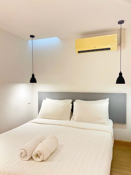 Our Double Rooms are equipped with an air conditioning, a safety box, flat-screen TV, a super comfy Queen-size bed, and a choice of firm or soft pillows to guarantee you have a great night’s sleep. On every floor, you find shared bathrooms with shower facilities with hot & cold water, complimentary bathroom amenities, and a hairdryer. Daily room cleaning with fresh towels is included.